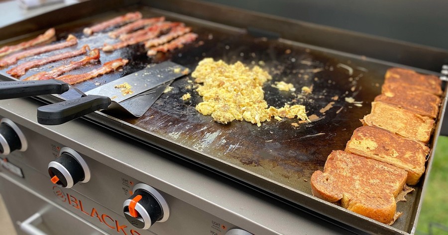 One of the best ways to use a griddle is to cook breakfast on it. Griddles are great for cooking eggs and bacon without having fat spattering all over your range—and then cleaning up that mess! The griddle evenly distributes heat, keeping your bacon from getting too crispy or burnt.